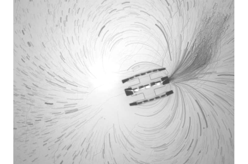 És mivel a mezőt létrehozó elektródáknak nincsenek mozgó alkatrészeik, a robotok rendkívül tartósak. „Ezeket a robotokat mikropipetta segítségével ismételten át lehet vinni egyik mintáról a másikra anélkül, hogy károsodnának” – mondja Miskin. Egy LED fényével feltöltve a robotok hónapokig képesek úszni.