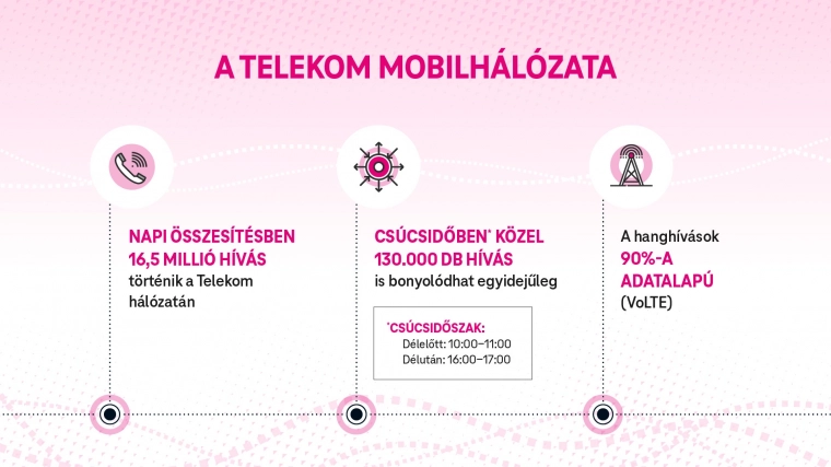 A számok beszédesek: a Telekom nagyjából 6 millió mobil eszközt szolgál ki nap, mint nap, amihez még a vezetékes felhasználási pontok is hozzáadódnak. A hálózat gerincét redundáns optikai hálózat biztosítja és ma már a bázisállomások több, mint 50%-a szintén optikán kapcsolódik az országos hálózathoz. Nemzetközi oldalon a DT, vagyis Deutsche Telekom felé georedundáns és több, egyenként 400 Gbit/s-os optikai gerinchálózat kapcsolja a magyar központot. A magyar hálózaton egyetlen nap átlagban 16,5 millió hívást, egyidejűleg akár 130 ezer kapcsolatot és 2800 TB mobiladat-forgalmat jelent, és mindegyiknél garantálni kell a maximális stabilitást.