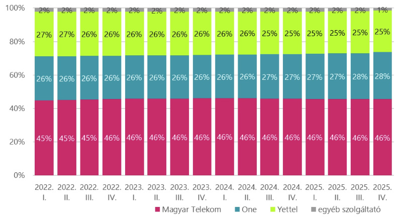 A fenti folyamatoknak köszönhetően míg tartósan a Yettel Magyarországhoz tartozik 2024 második felétől a hanghívást forgalmazó előfizetések negyede, addig a One Magyarország 28%-ra tudta növelni részesedését, míg a Netfone valamivel 100 ezret meghaladó előfizetője ugyanahhoz a cégcsoporthoz tartozik. A Telekom mindeközben három éve stabilan 46%-on tartja magát ugyanebben a szegmensben.